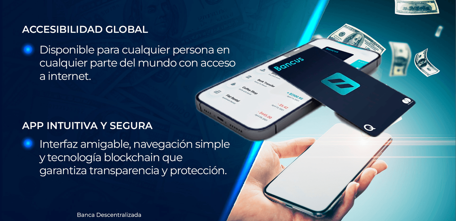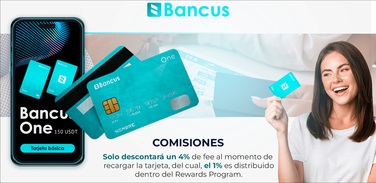 BANCUS es una solución financiera 100% descentralizada que te permite recibir criptomonedas como USDT y usarlas directamente en el mundo real con una tarjeta Visa internacional.